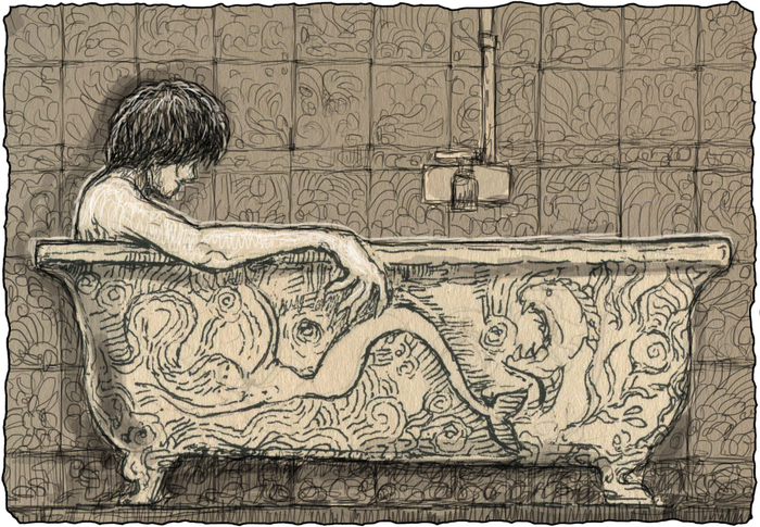 Толпа, которая собралась посмотреть на чужеземца, вдруг резко, ослепленная надеждой, сбежалась к нему. трудолюбивые люди держали в руках блестящие хрустальные кубки, они их сделали сами и на них были написаны имена как пророчества, а те кто был попроще нес все что мог, иссохшие бочки, старую посуду, кто-то принес ванну, так так хотелось ему искупаться в истене надеясь обрести тепло и просветление.