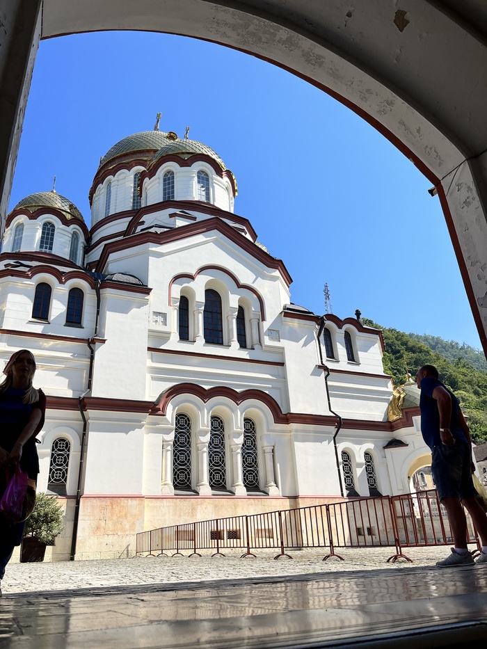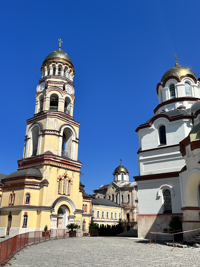 Были в Новом Афоне, в монастыре. Точнее в единственном работающем храме. Хотя их там штук 6. Красиво до умопомрачения. Как на картинке. Небо сказочно синее. Зелень такая яркая, что не верится глазам.