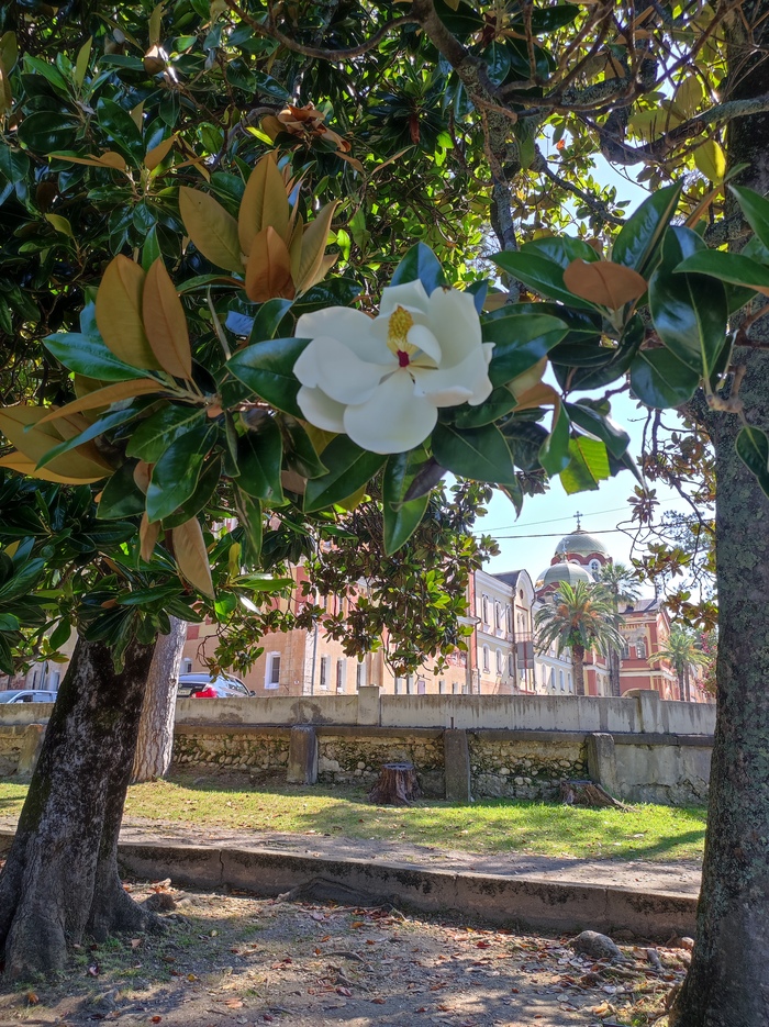 Магнолии вокруг растут. Гигантские. И очень пахнут.