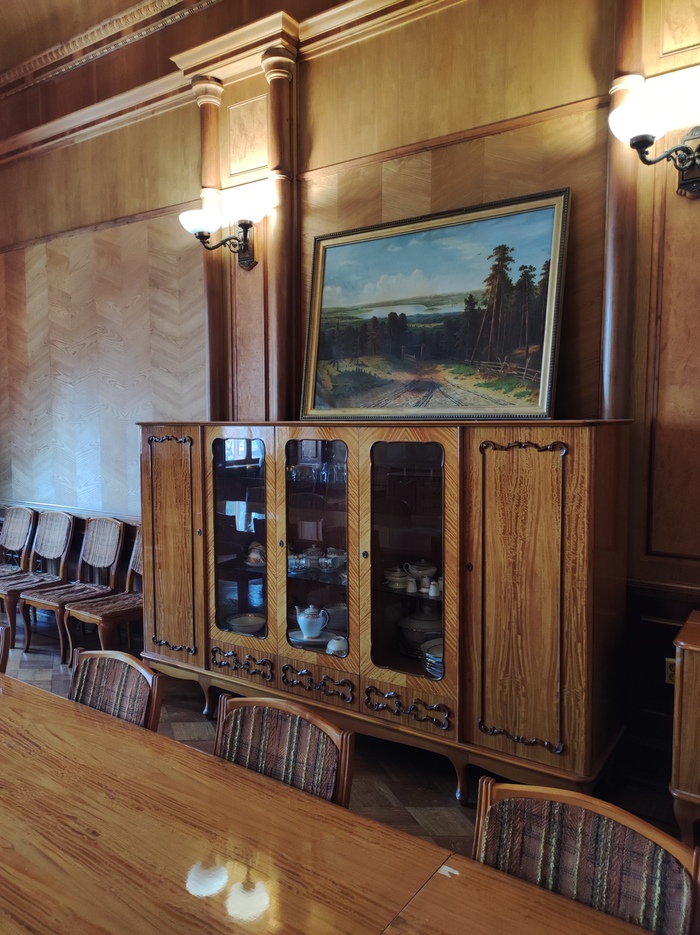 Ещё мы были на даче Сталина,на которой он проводил очень много времени. Атмосферное место. Всё обшито деревом разных сортов. Смотрится стильно.