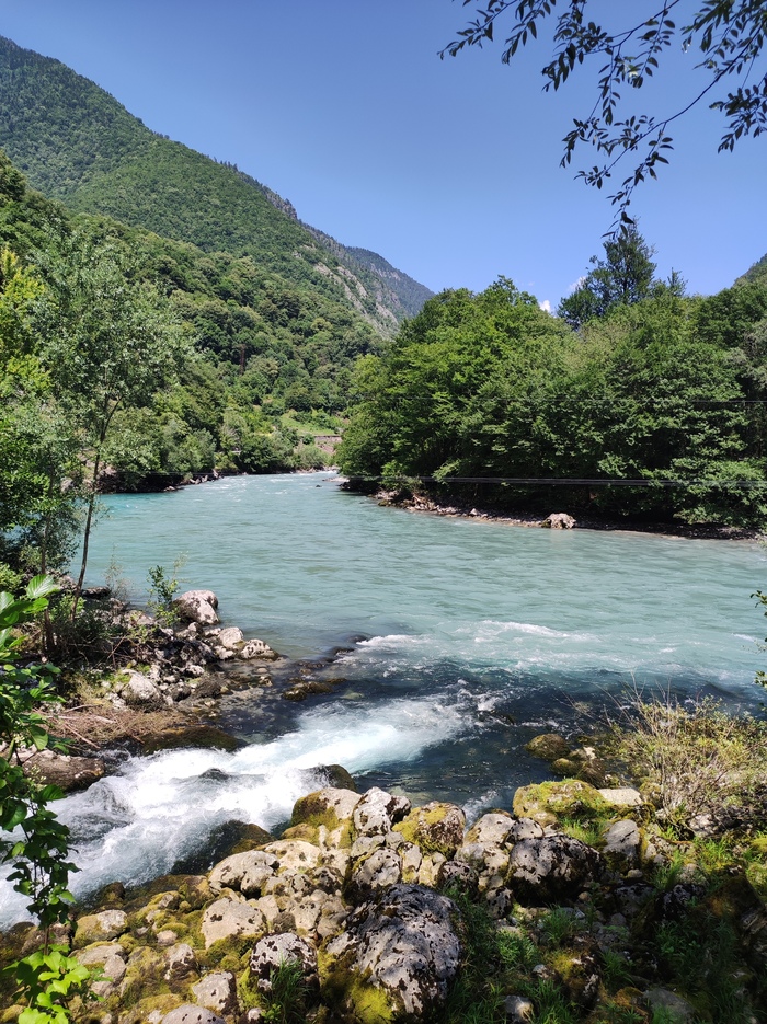 Куда ни поедь, везде горные реки. Они же питают города Абхазии. Вода кстати очень вкусная, легкая. Пить одно удовольствие! Мыться кстати тоже.