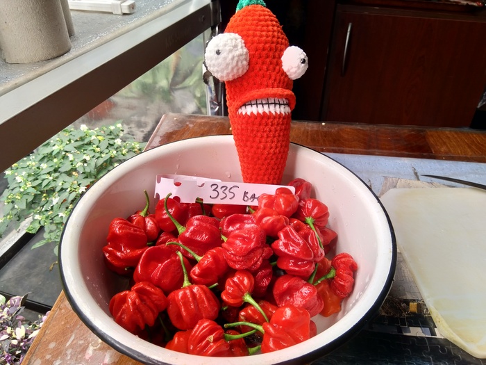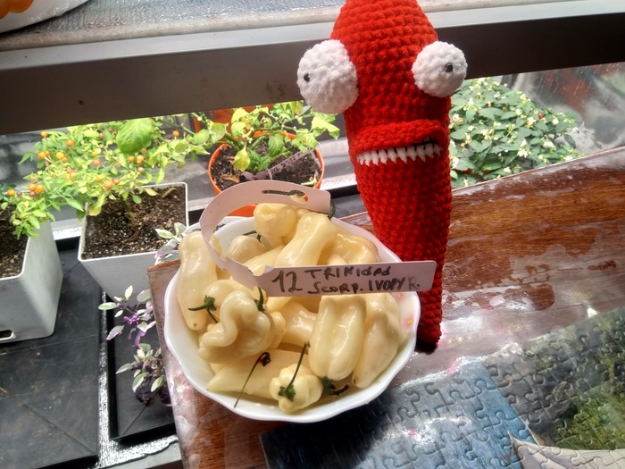 А вчера вечером заметила, что на перце сидит гусеница и жрет его. Я его жрать не могу, один из острейших в мире, а она жрет.