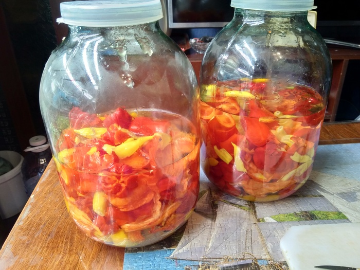 Это я все к тому, что в этом году я решила не обрезать, а так и перенесла его с балкона на подоконник, и решила посмотреть, что будет. На данный момент в наличии было перцев 5, которые зрели, и я ими естественно дорожу. А тут смотрю - какая-то дырка в одном. Странно.