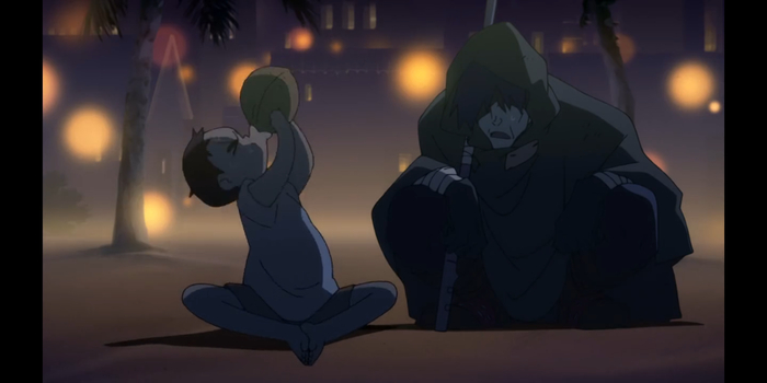 Главный герой шокирован тем, что увидел. Для того, чтобы выделить этот момент, постарались и аниматоры, и актёры озвучки оригинала. Но, признаюсь, я обратил на эту сцену внимание не при первом просмотре.