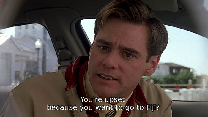 В "Шоу Трумана" главный герой окончательно убеждается, что всё вокруг спектакль, во время разговора с женой в машине. Джим Керри отлично показывает эмоции главного героя мимикой и интонациями.