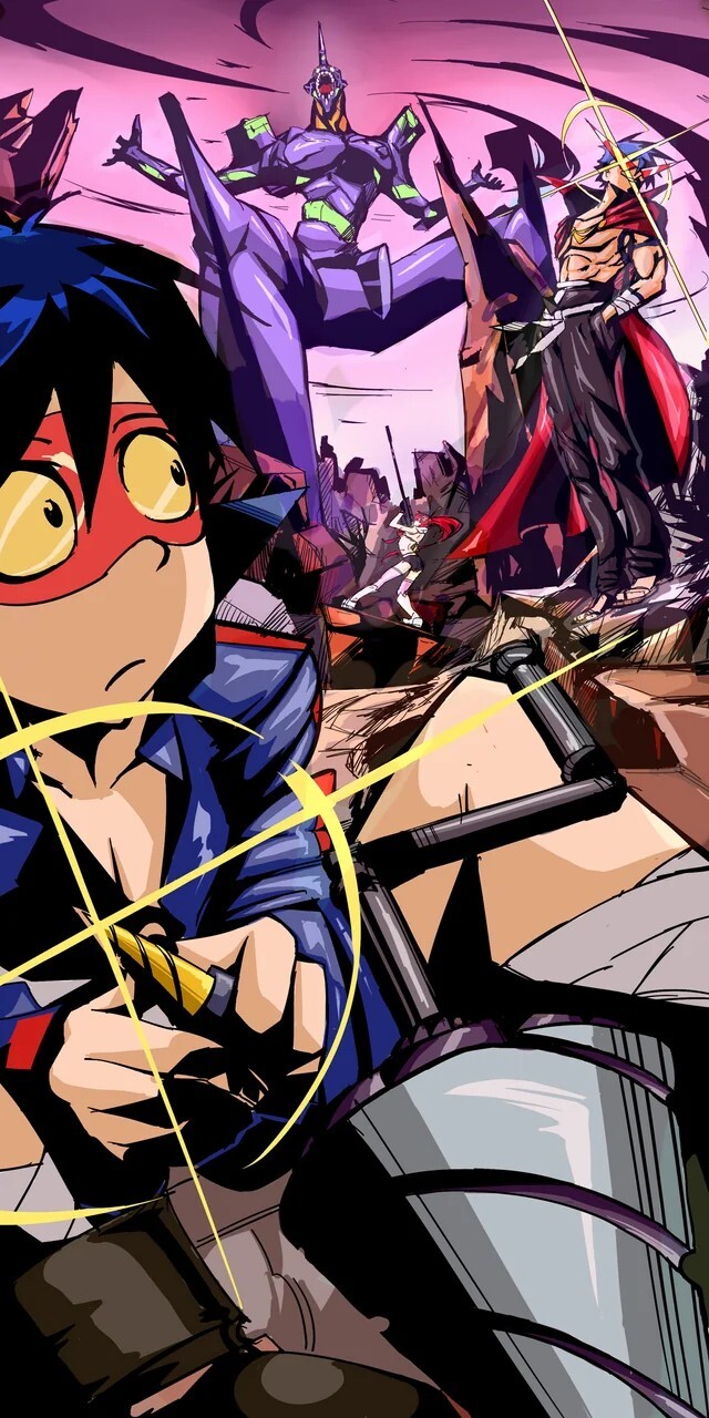 "Дайбастер", в свою очередь, прямо связан с "Ганбастер", все вместе они связаны с "Евангелион", в котором поднимается та же тема "сансары".