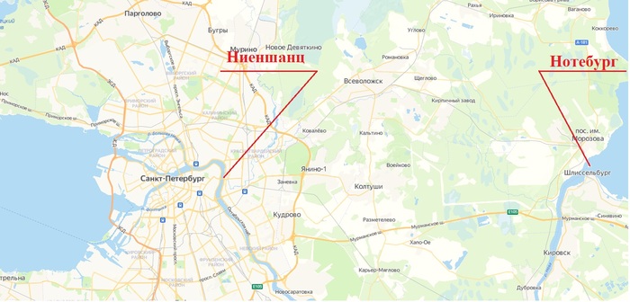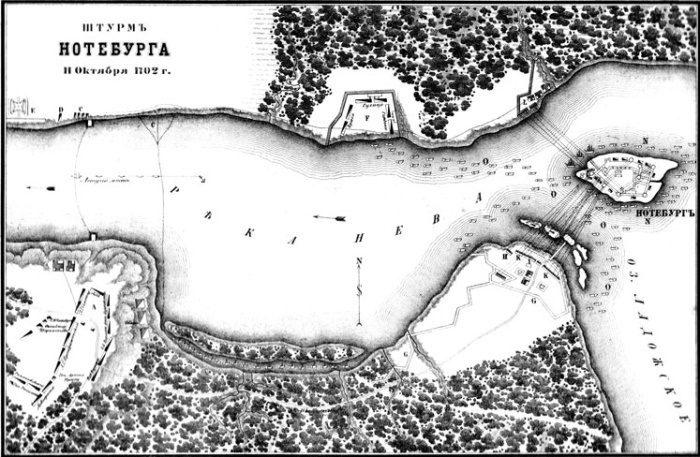 Тем не менее, чтобы построить город даже в таких условиях, для начала требовалось «расколоть орешек» - взять запиравшие Неву с двух сторон крепости Ниеншанц и Нотебург.