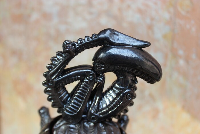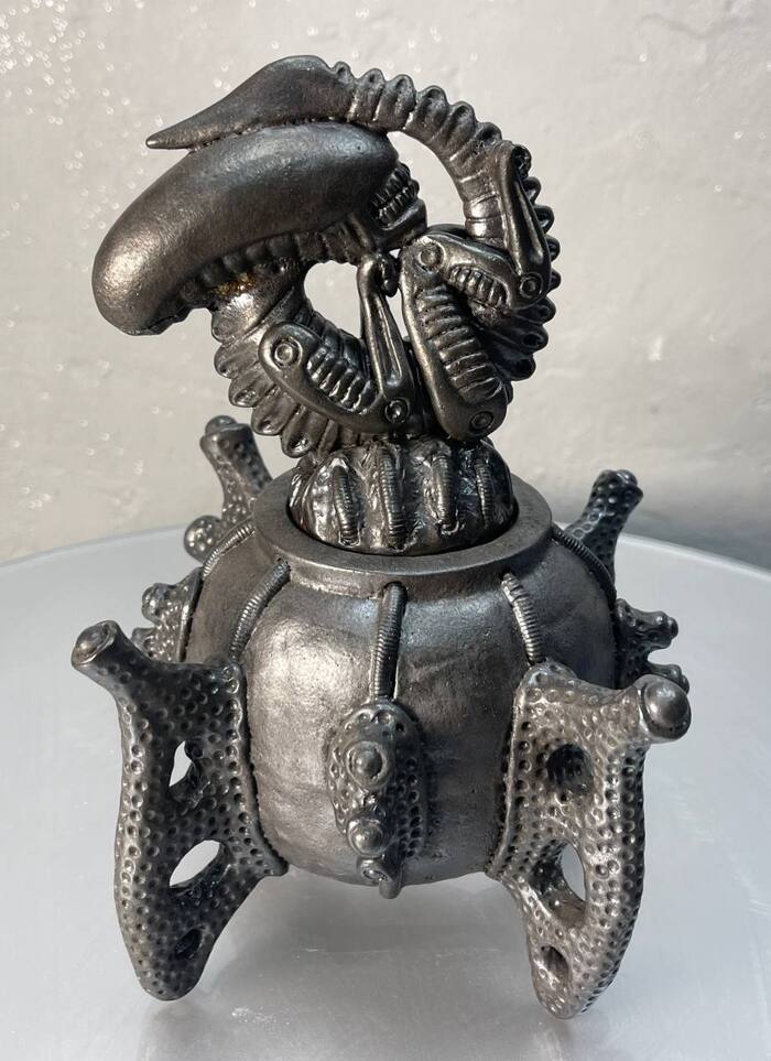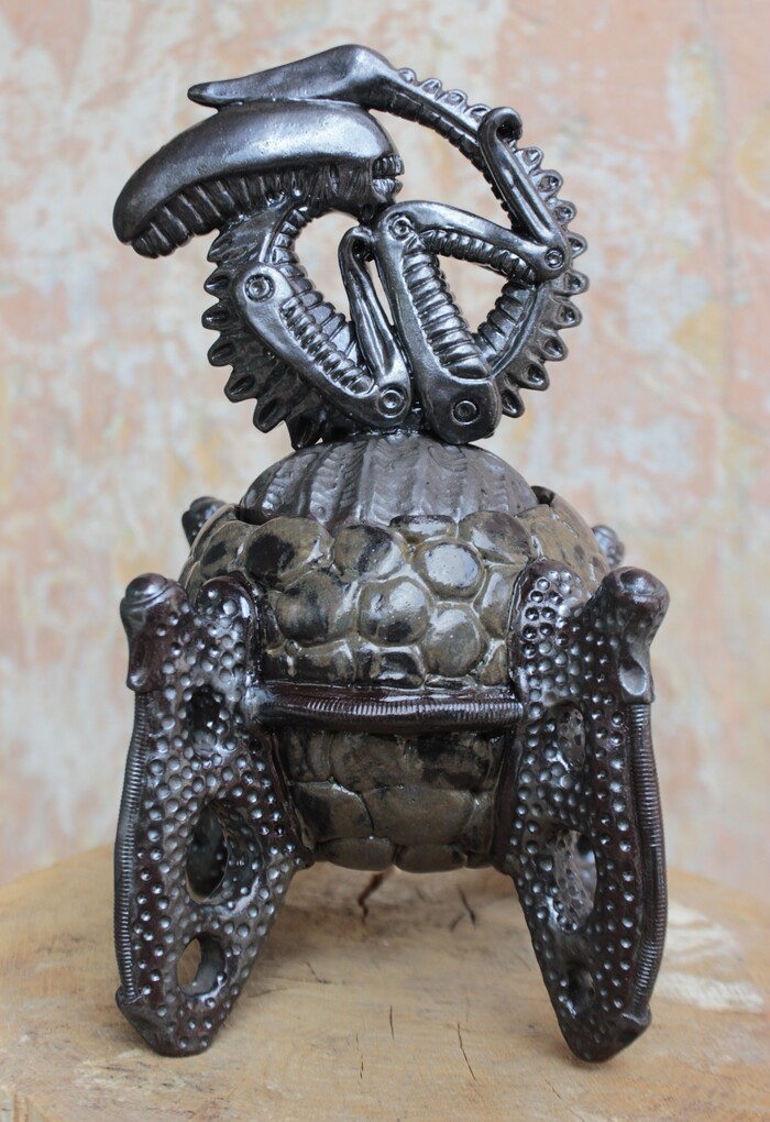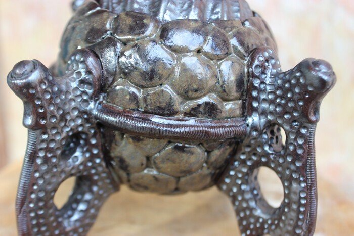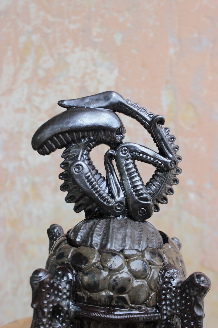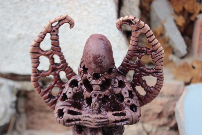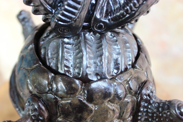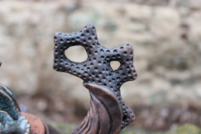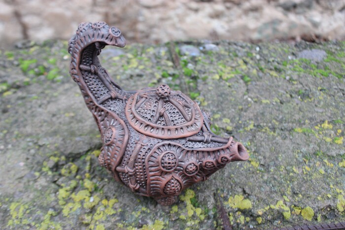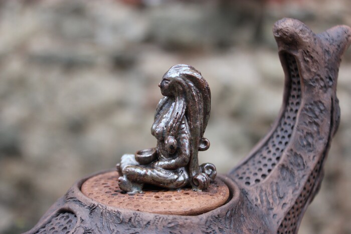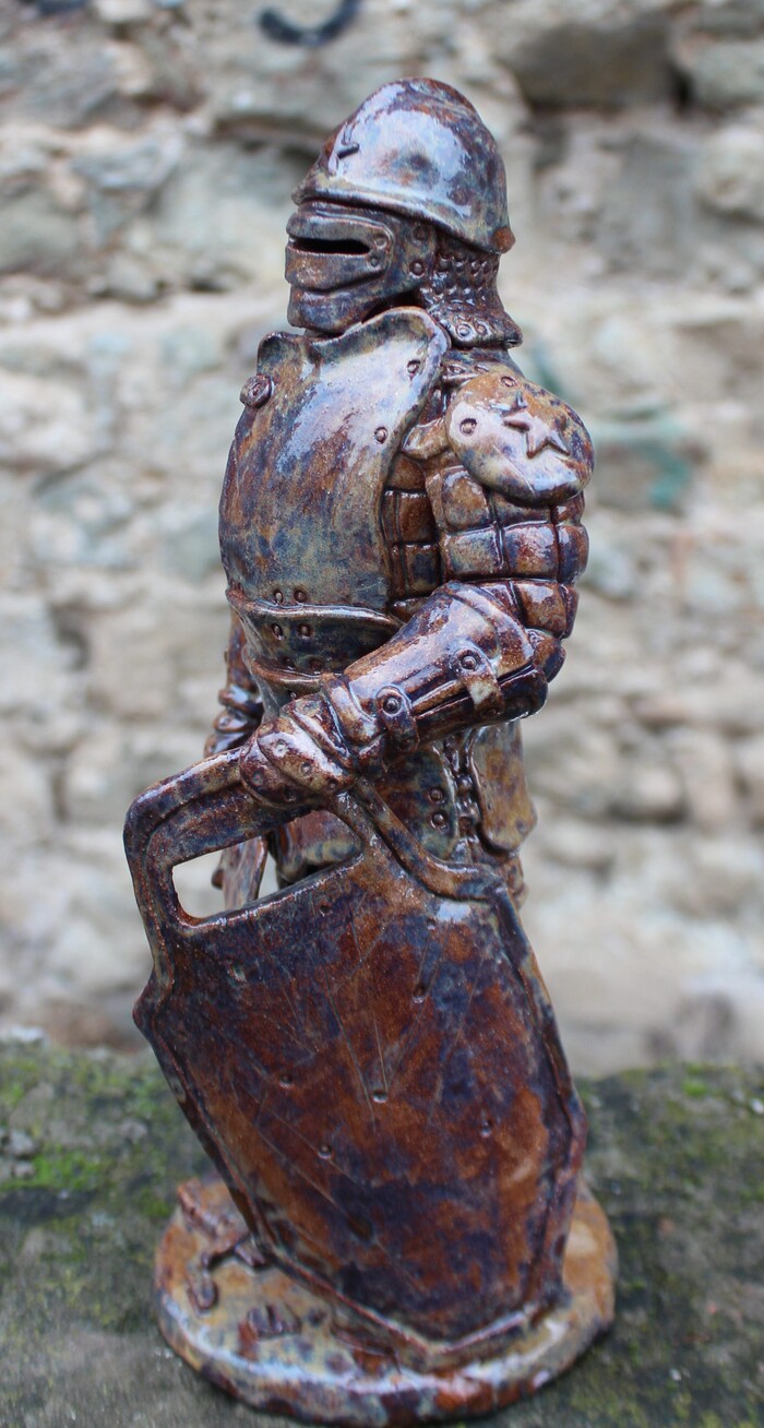 Готовлю серию больших фигурок и шахматных наборов на тайм-панк тематику. В процессе отрабатываю в форме разные идеи. Отдельно интересно в работе, то как повела себя глазурь. Изначально здесь должна была быть матовая прозрачка, но она себя очень плохо показала после обжига - появились мутные разводы и пятна. Спасать ситуацию пришлось эффектаркой "Медь". Результат очень подошёл форме.