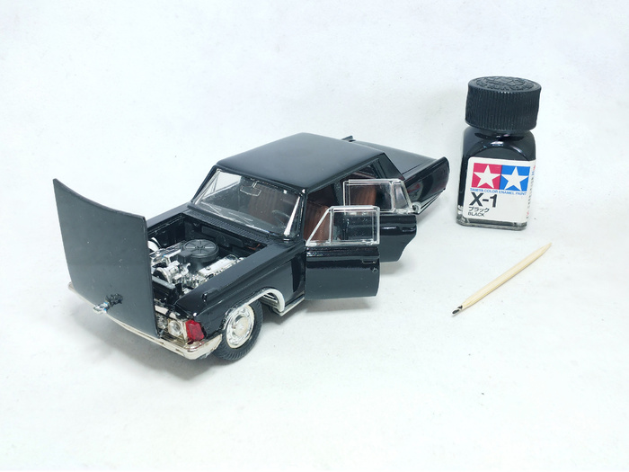 После сборки я устранил все мелкие сколы ЛКП на кузовных деталях и немного отполировал модель.