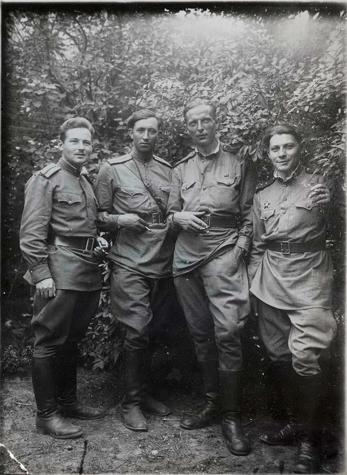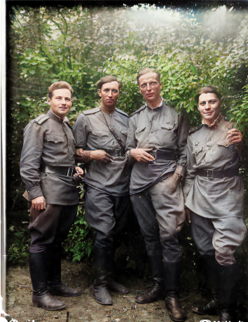 При раскрашивании фотографии с моим дедом (справа крайний), на одном из сайтов форма окрашивается в серый. Я не знаток, но есть подозрение, что она должна быть другого цвета?