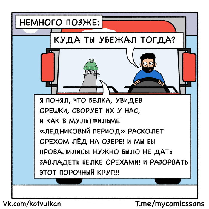Кот Вулкан и дальнобой едут далеко-далеко. В дороге дальнобоя развлекает очень эрудированный и умный кот Вулкан.