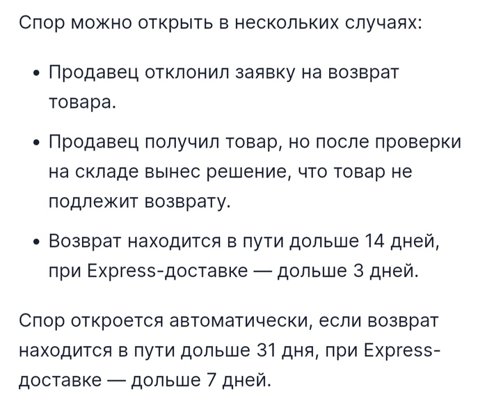 На случай непонятного с возвратам Озон даёт открыть спор: