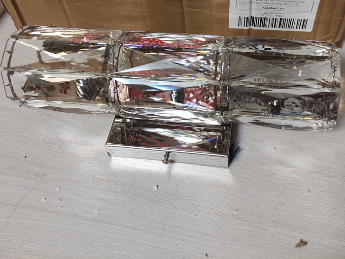 Через месяц довольная бежала в пункт выдачи, где меня ждала всего лишь коробка длиной 40 см. Может бра в разобранном виде? Тут же в пункте выдачи вскрываю, а там бра всего 30 см на три секции.