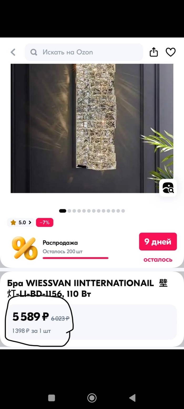 В поисковой выдаче Озон есть не только продавцы из России, у которых покупать безопасно и классно (это Озон), но ещё и Китайцы, у которых покупать не классно совсем (это Озон глобал с другими правилами). Меня ничего не смутило, так как площадке доверяла, ждать товар месяц могла и у продавца были хорошие отзывы. Цена за товар тоже была обычной. Заказала настенное бра длиной 60 см на 6 секций: