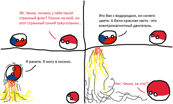 Крупная страна (Россия, США), видит покемона, хватает покебол и бросает в покемона, чтобы поймать. Потом оказывается что это был не покебол а Польша (она как раз бело-красный шарик). Потом, допустил, покемон убежал, а Польша хрясь об стенку! И крупная страна, типо, Polen?/Польша?