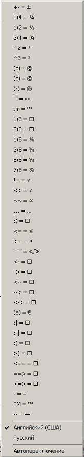 Ворд изжил себя очень быстро, особенно из-за отсутствия внутренних кавычек и неоправданного оверхеда. На следующем этапе я пробовал Unicode-последовательности и Notepad++ и системное приложение «Таблица символов» из XP, но держать в голове получалось немного и тут пришла на помощь автозамена в Punto Switcher! Выглядело это примерно так: