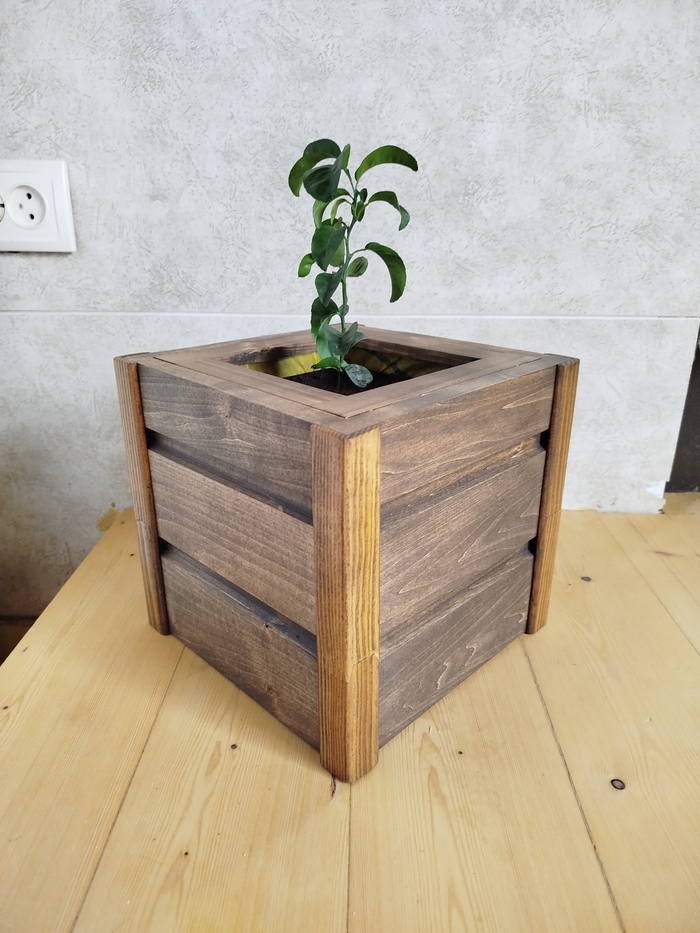 Первое мое изделие, "Кашпо для цветов" точнее я туда высадил мандарин. А то им было тесно.