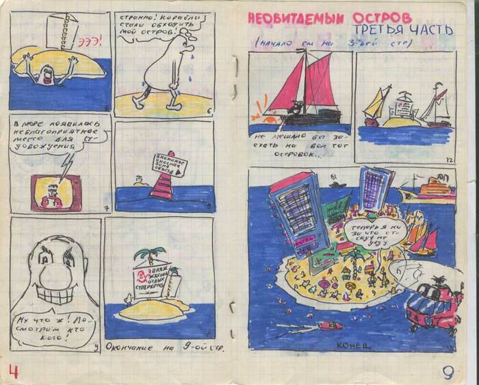 Фигуры постепенно ушли из журнала, но зато я начал рисовать комиксы. Кроме того, у нас был собственный музыкальный хит-парад. Мы рисовали клипы и показывали в своей передаче "МТВ". Некоторые песни были самописные, некоторые - просто переделки, а некоторые - пелись как есть.