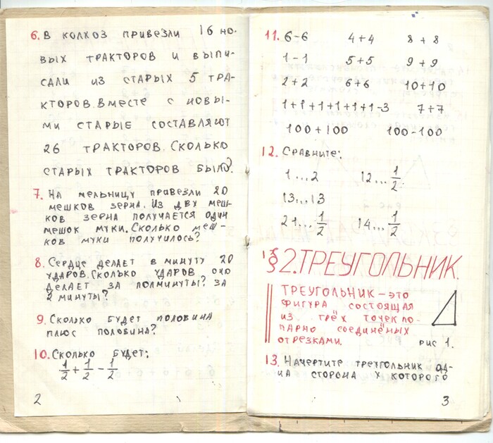 Наверняка все в детстве играли в школу. Мы тоже играли, и, разумеется, в игрушечной школе были не все предметы. Для такой школы я, тогда пятиклассник, составил собственный учебник. Сохранилось 2-е издание (дополнительное и переработанное), видимо, 1-е издание вышло не совсем удачным. В учебнике 36 страниц, не считая обложки.