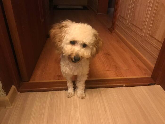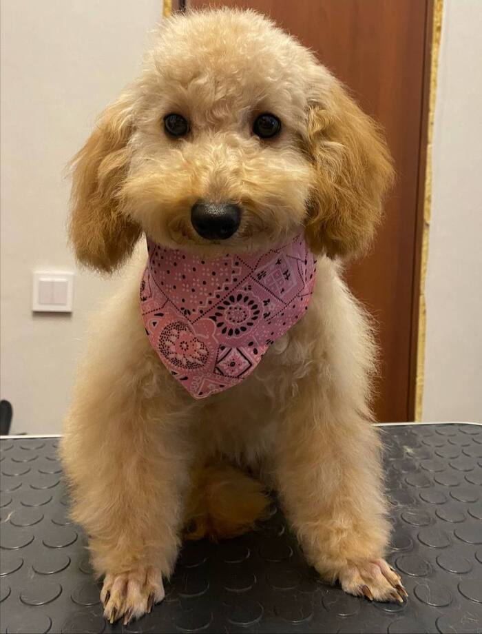 Эта стрижка нам понравилась, но нашей слабостью оставались волосатые щёчки. Поэтому, дождавшись, пока шерсть полностью отрастёт, мы снова направились к грумеру за новой стрижкой - «Тедди». Именно так сейчас выглядит наша красавица: с уютной милой мордочкой и короткой шерстью. Длину с тела мы убрали, потому что дома жарко, а на улицу мы её и так одеваем.