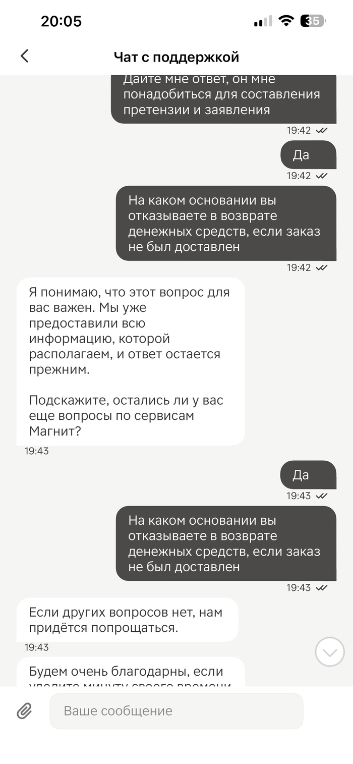 Звоню брату, минут десять по телефону безуспешно пытаемся что-то сделать. Таймер заказа отвратительно (хоть и беззвучно) тикает. Наконец, не выдерживаю и решаю искать интернет — хотя бы связаться с поддержкой. Стометровка вверх по жаре в ближайший кабак, там подключаюсь, ещё минут 10 жду ответа от поддержки (гореть ей в аду, об «эффективности» курьерской поддержки «Яндекса» расскажу потом отдельно). Говорят — чёрт с тобой, неси заказ назад.