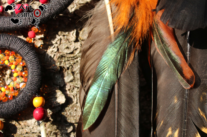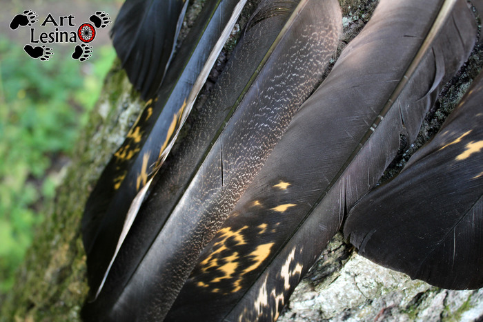 Перья от глухаря (немного подкрашены в оранжевый цвет) и петуха.