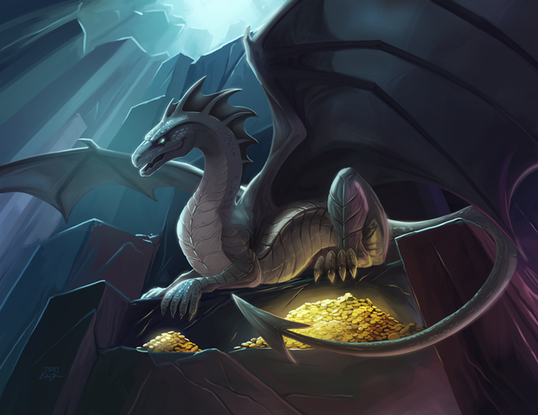 — Девица! Накрывай, дракон пришёл! — Дракон добавил в кучу несколько брусков золота, маску фараона Тутанхамона и бронзовую статую писца.