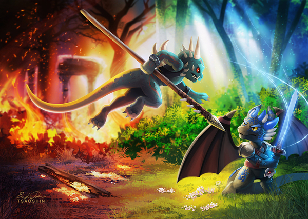 Здраво размыслив, дракон пришел к выводу, что тело в броне является не кем иным как рыцарем. А рыцарь тем временем не сдавался, и продолжат тянуть меч, тихонько матерясь под нос.