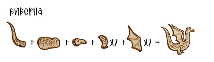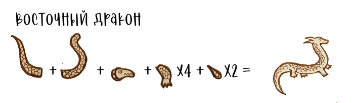 У меня тут внезапное бесполезное открытие, как раз к году Дракона: абсолютно все эти милые пресмыкающиеся в мифологии любых стран собираются из такого набора элементов:
