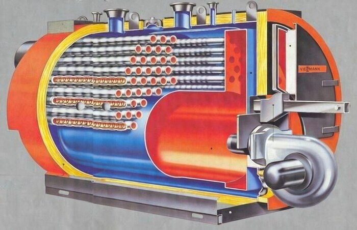 Но бывает и по другому - котлы жаротрубные, в них греющее тело – огонь и продукты горения высокой температуры, заключено в трубы, и эти раскалённые трубы греют пространство вокруг себя, например водный резервуар. Технология сейчас не очень популярная в «большой энергетике», на ТЭЦ таких почти не встретишь, но в меньших масштабах применение очень даже массовое, да и сам жаротрубый котел - классика теплотехники.