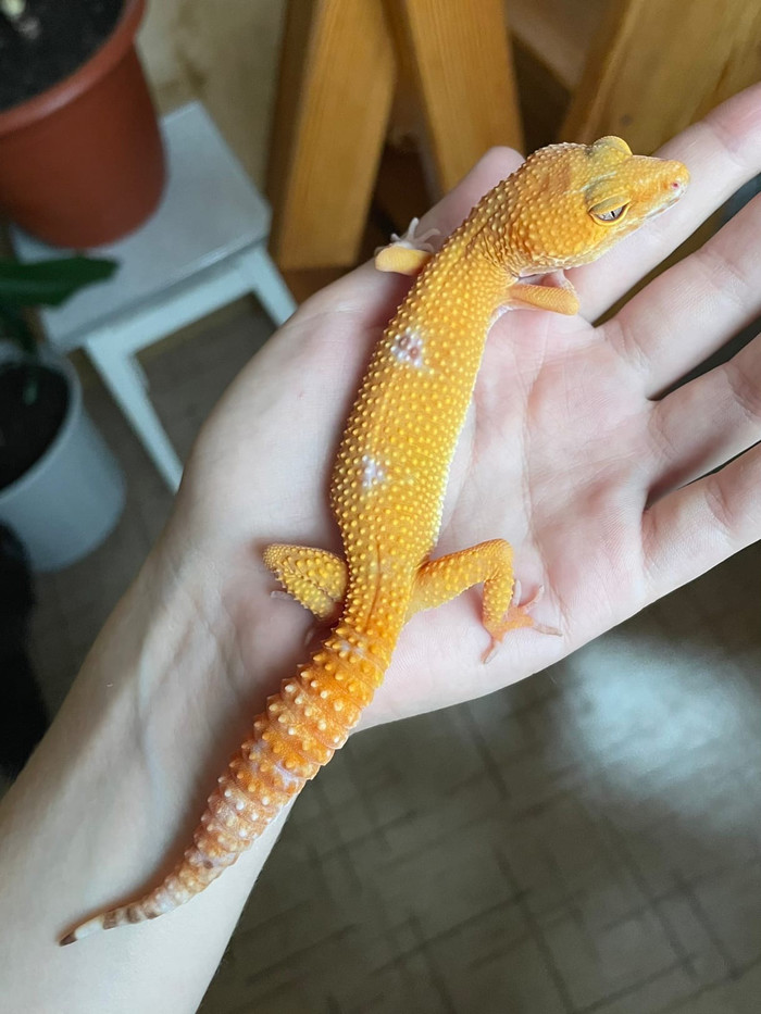 И именно поэтому, маленькие эублефары очень быстры и резки в своих движениях. Когда я отправляю малышей в новый дом, то всегда предупреждают, что «ручной» ящерица станет только со временем, в период взросления. Малыши очень остро реагируют на прикосновения, и с легкостью спрыгивают с рук несмотря на высоту.