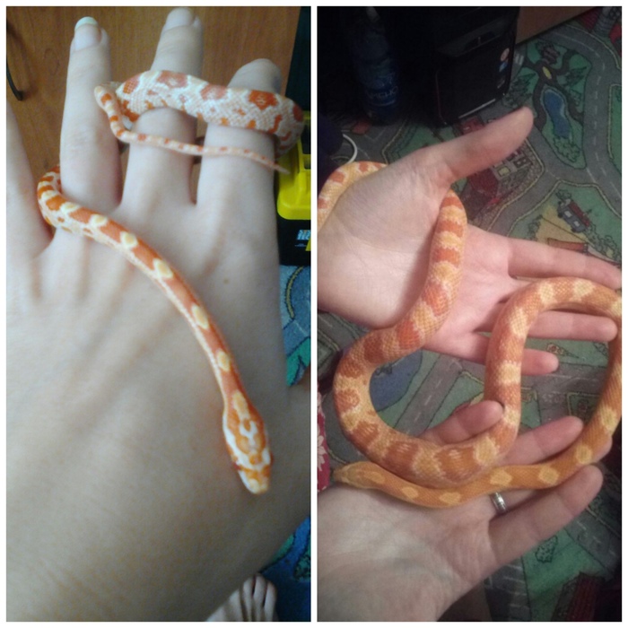 Суд да дело, вышла замуж снова и как-то заикнулась про змейку. Супруг бодро поскакал в город и сделал мне типа сюрприз - привез вот такого пиздрика (слева). Справа - он же, через год и три месяца.