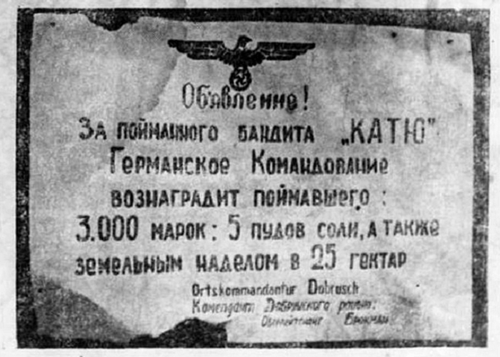 За бандита "Катю" Германское командование денег обещало и соли с землей
