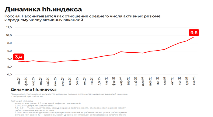 Ещё одной мулькой 2025 года была борьба с безработицей. Судя по всему в ЦБ посчитали низкую безработицу злом и с ней тоже стали бороться. Как результат, количество вакансий за год сократилось на 30%.
