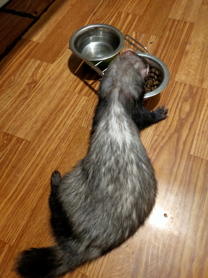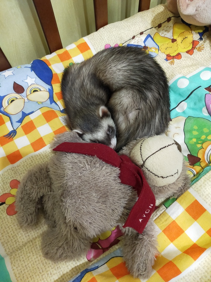 За это время, я отучилась на водителя трамвая, забеременела, завела второго хорька, ушла рожать, родила ребенка, вышла из декрета, снова ушла в декрет (всё с тем же ребёнком). Эта хоребазина за это время: так и не подружились с вторым хорьком, научил ребёнка ходить "жопой вперёд", есть с пола и рук, развлекать его и играть с ним, сожрать резинку, побывать на операционном столе и выздороветь.