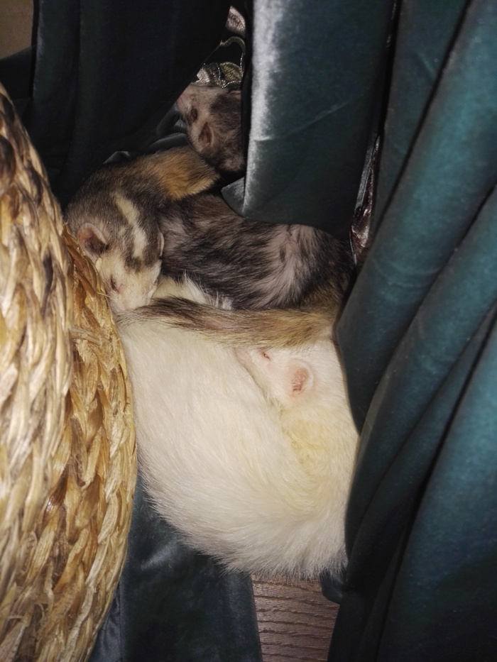 Если вы надеетесь, что двумя хорьками отделаетесь, то глубоко заблуждаетесь. У меня в моменте дома было 8 хорьков, ВОСЕМЬ КАРЛ! Вы наверняка думаете, что почти все это приютские на передержке? Нет, 4 из них уже были нашими, хотя начиналось все с одного, потом было типа «ему же будет скучно», потом попался хорек-манипулятор, который обманул даже меня, потом ему нужна компания и так далее)))