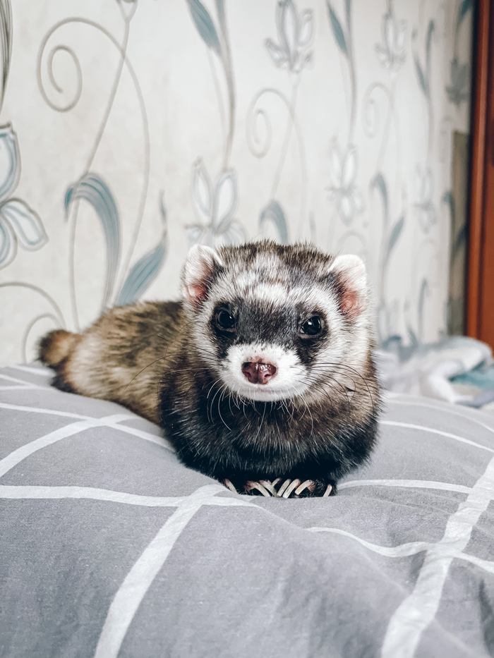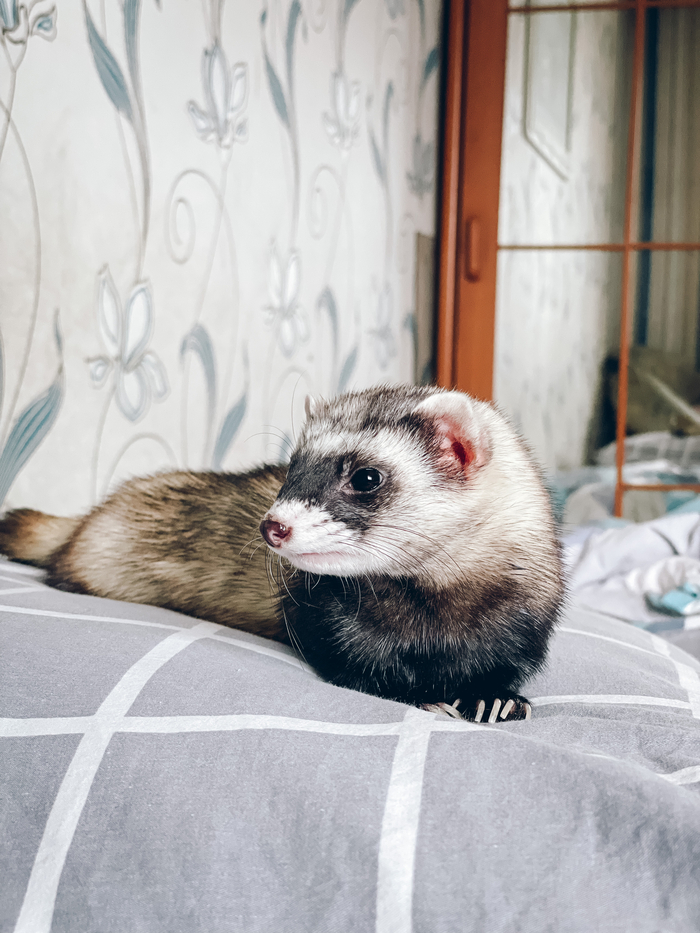 С вторым хорьком она так и не подружилась, у них была "холодная война", но иногда она его так гоняла: бежит за ним, кричит, подняв и распушив свой хвост-коротыш. Это выглядело так, как будто внук - наркоман пытается отжать у бабушки пенсию, а она за неё борется до последнего. Так они и жили, у каждого своё, каждому по своему.