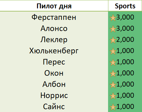 Рейтинг лучших пилотов дня: