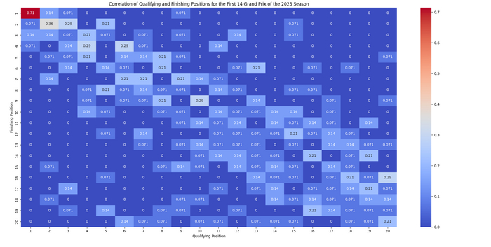 Корреляция позиций в квалификации и в гонке в 2023 году