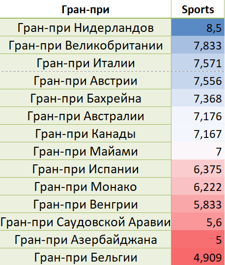Оценки по результатам Гран-при Италии (7.571 балла):