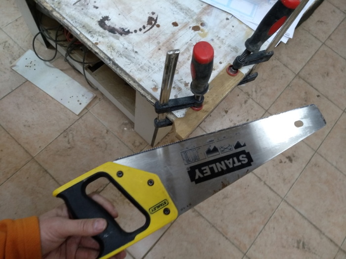 Далее разбил старую ручку, срезал алюминиевые клепки, вырезал заготовку и пропилил паз под полотно ножа.