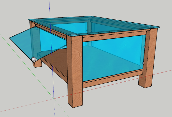 Журнальный стол с внутренней полкой за стеклом (кстати, можно ли сделать чтобы стекло на рендере было прозрачное?):