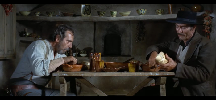 За непринуждённым предложением "давай выпьем" и последующим продолжительным молчанием невольно вспоминается сцена из "Хорошего, плохого, злого" Серджио Леоне. В начале фильма герой Ли Ван Клифа, молча войдя в дом, уже ясно даёт понять свои намерения. Поэтому в таких ситуациях слова нужно выбирать особенно тщательно.