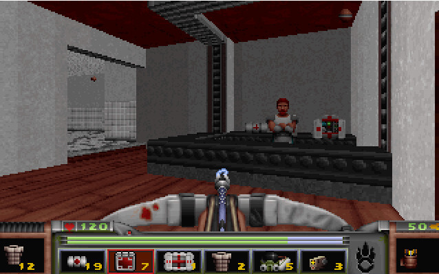 Технологически игра, конечно, уступала полностью (почти полностью) полигональному квейку, но игровой процесс тут был веселее, пусть враги и распадались на пиксели, а трупы всегда лежали ногами к игроку. В дюкматч по сети тоже было неплохо играть, всякие там уменьшители, возможности спрятаться в вентиляции и прочие голодюки добавляли тактических ходов и эмоций.