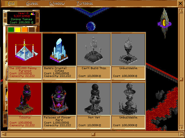 Что-то вроде помеси Sim City 2000 и Theme Park про рай и ад.