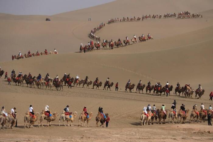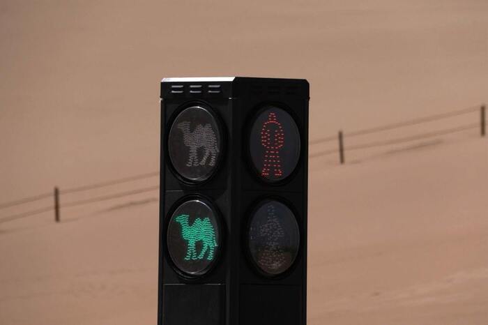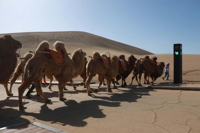 В городе Дуньхуан очень популярны поездки на этих животных и недавно там установили специальный светофор для регулировки их движения.