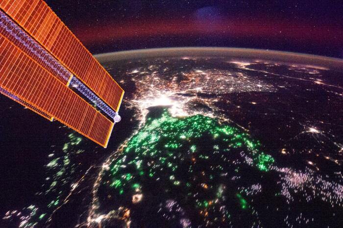 Оно исходит от рыбацких судов, огни которых видны даже с орбиты.