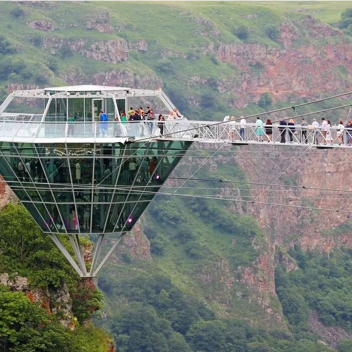 240-метровый стеклянный мост над каньоном Дашбаши в Алгетском национальном парке на юге Грузии начал принимать посетителей