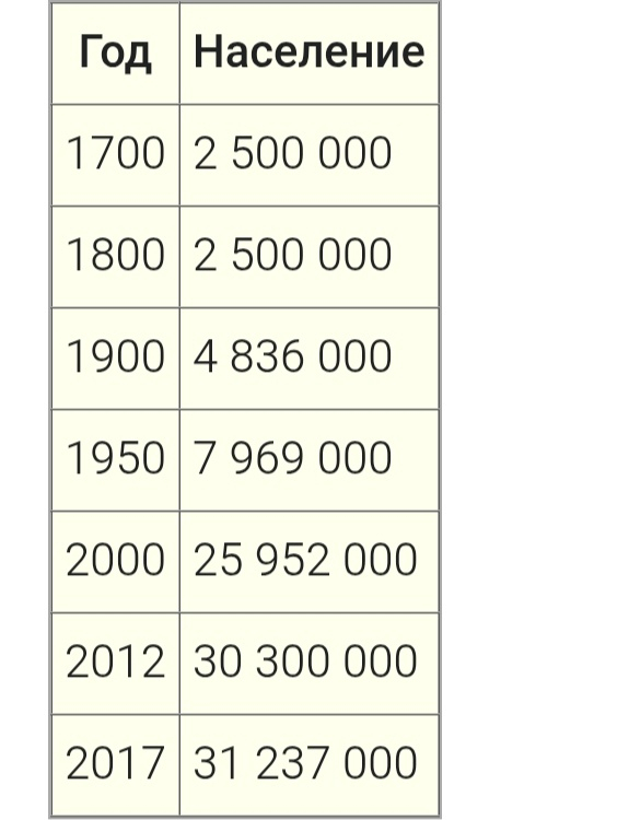 Но вернёмся в Южную Америку. В этой стране живёт 34 миллиона человек. Не так много, как могло бы быть. Население смешанное: