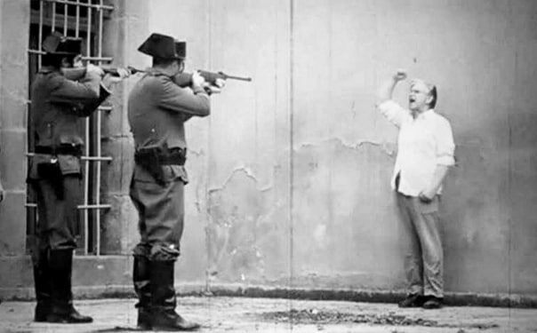 Испанский поэт Федерико Гарсия Лорка читает стихи перед расстрелом, 1936 г. Один из самых видных поэтов Испании 20 века. Был левым активистом. На несколько недель приехал на родину и там началась гражданская война. Был взят радикальными правыми и расстрелян. На русский его произведения переводила М. Цветаева. Лорка - известная личность у европейских коммунистов.